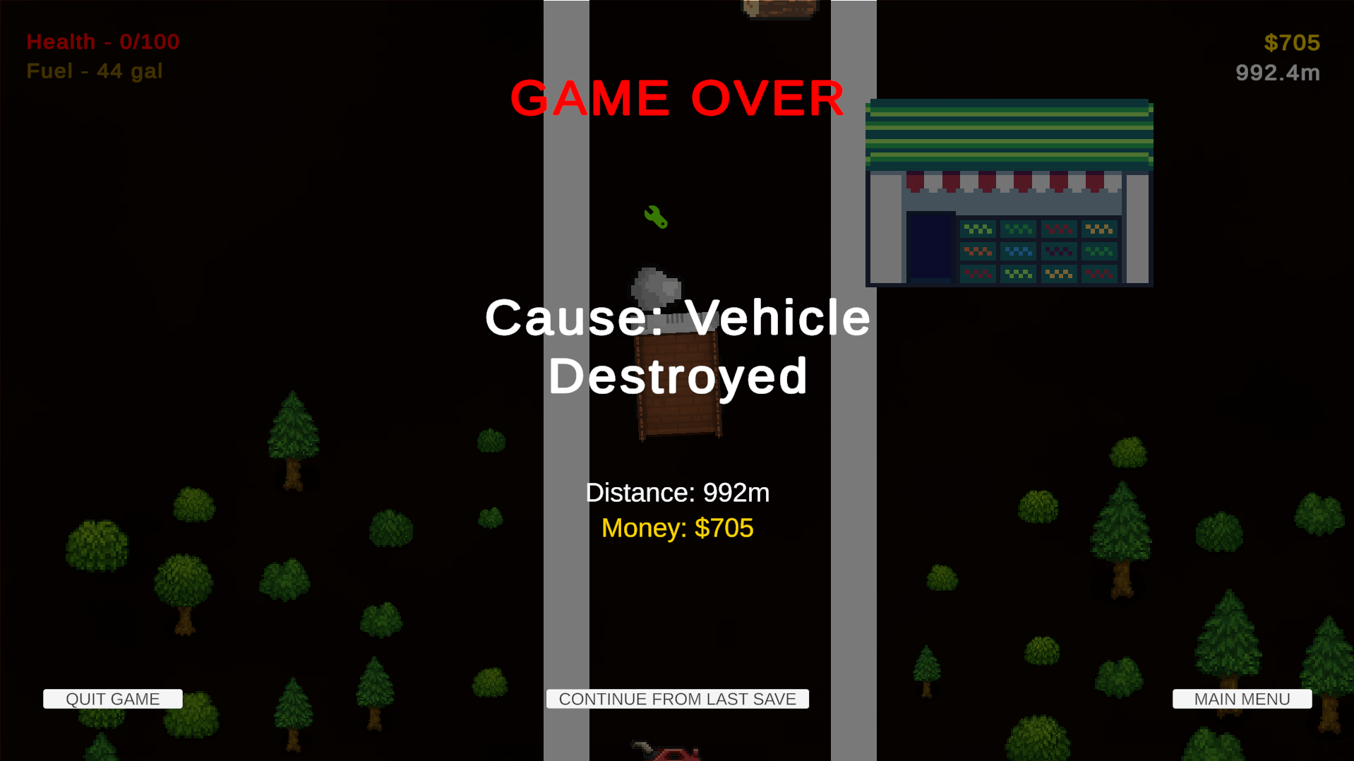 Drive through an endless muddy road, avoiding obstacles, managing your fuel, and visiting roadside garages for repairs and upgrades.